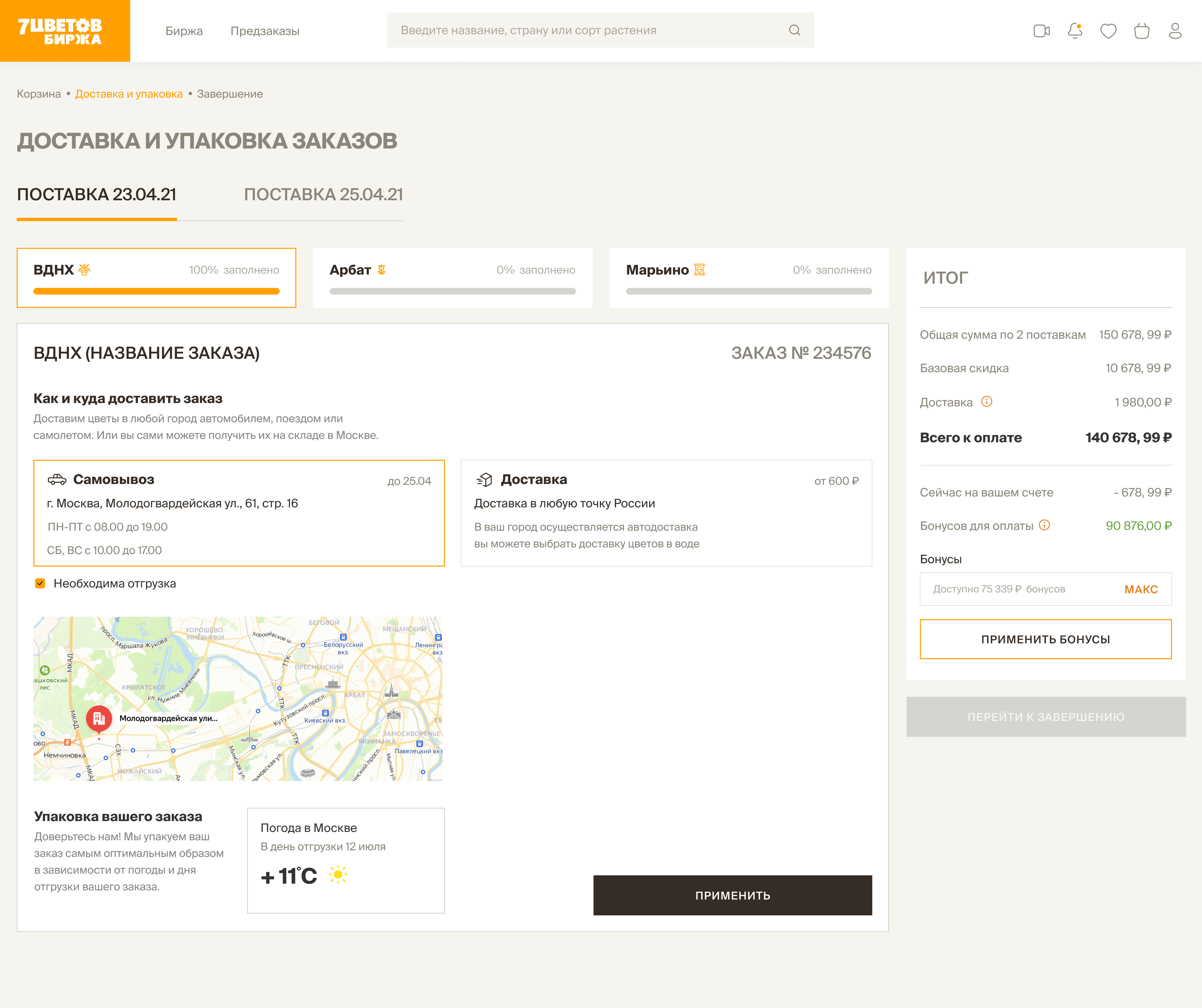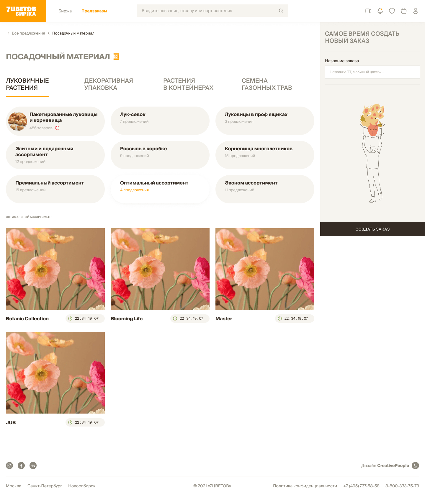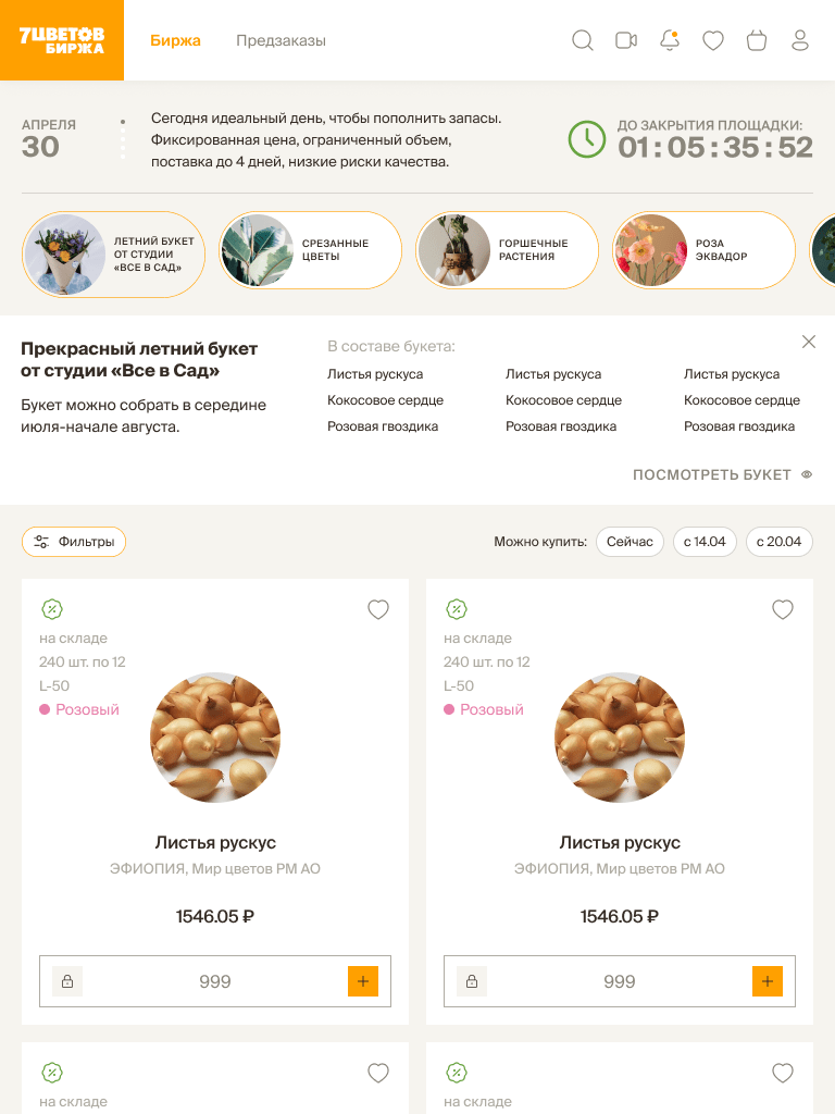 As a result, we created a personal cabinet, where a client can manage his account, browse the catalog, create orders and draw up claims. Later, based on this cabinet AXIOMA implemented a local flower exchange for “7Flowers” customers.