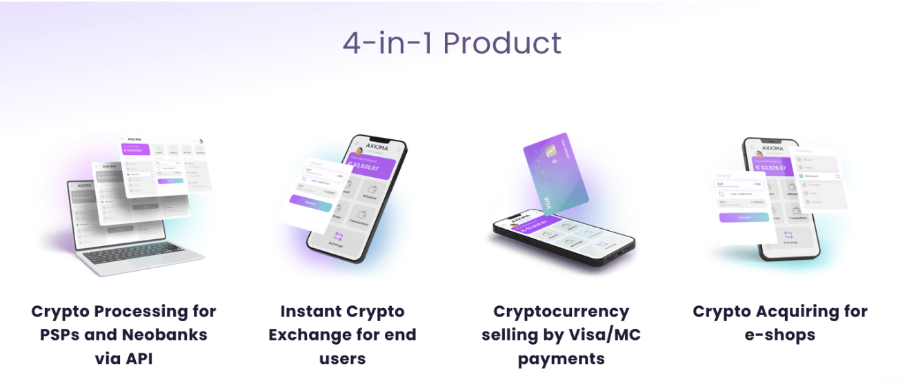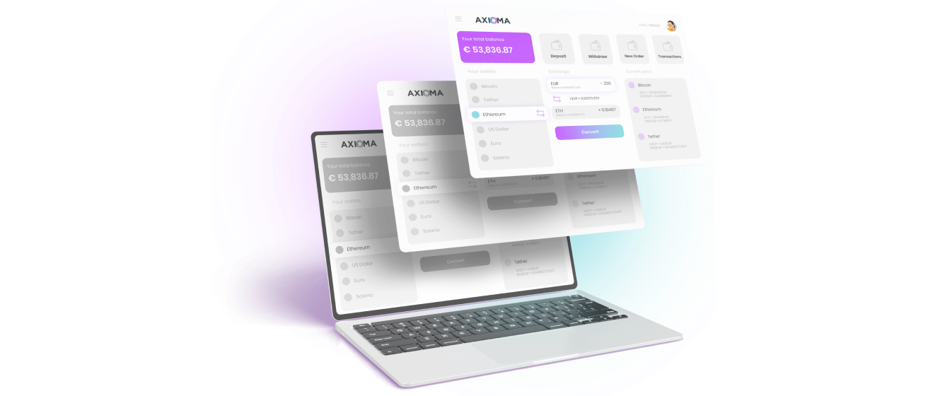 AXIOMA creates and develops its own white-label product – software for crypto processing, which is delivered as a standalone solution.