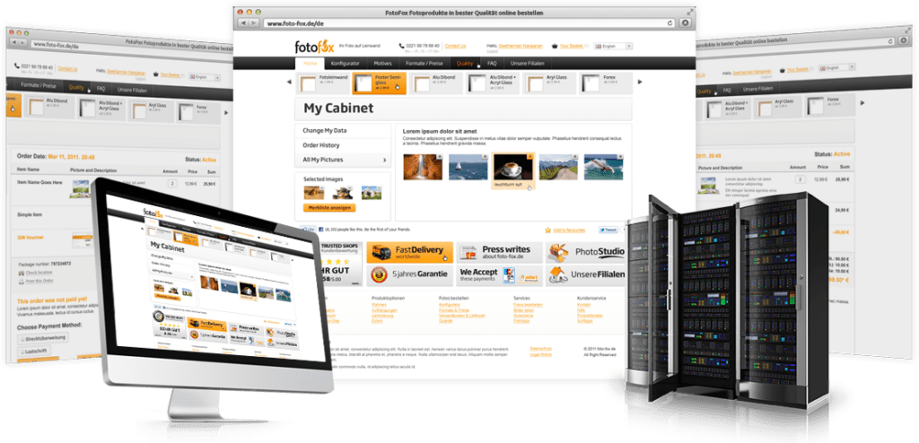 Production is realized in semi-automatic mode. The website sends prepared list of files. Printing equipment uses these files to print the images on selected base. Then the base attaches manually to the frame, wall folder, etc.