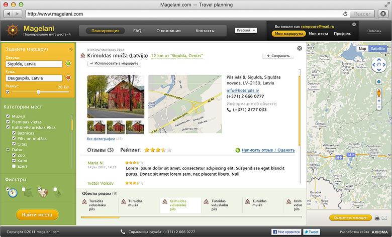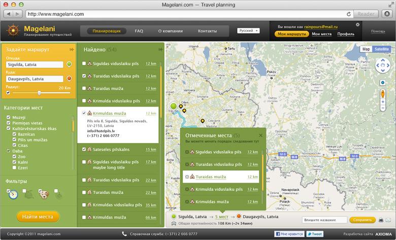 Service on the basis of the Google Maps, allowing to plan routes and providing information on important objects along the line