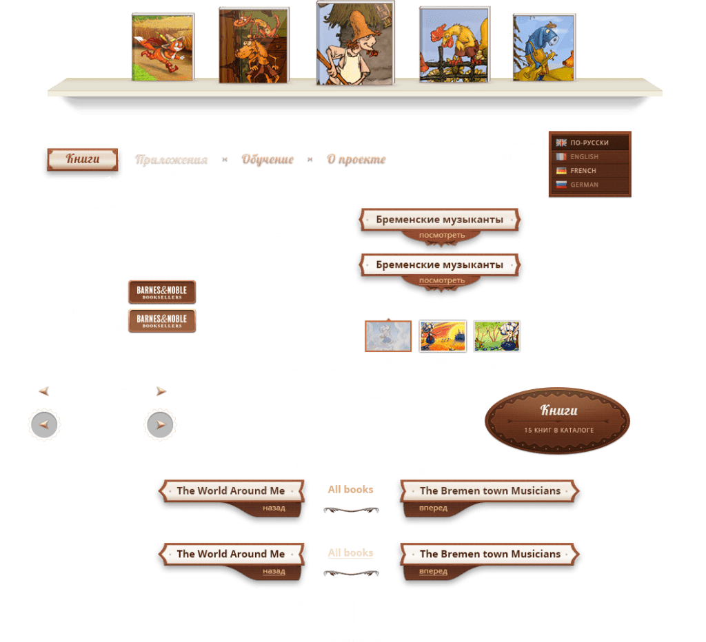 Website designed as bookshelf with books on it
