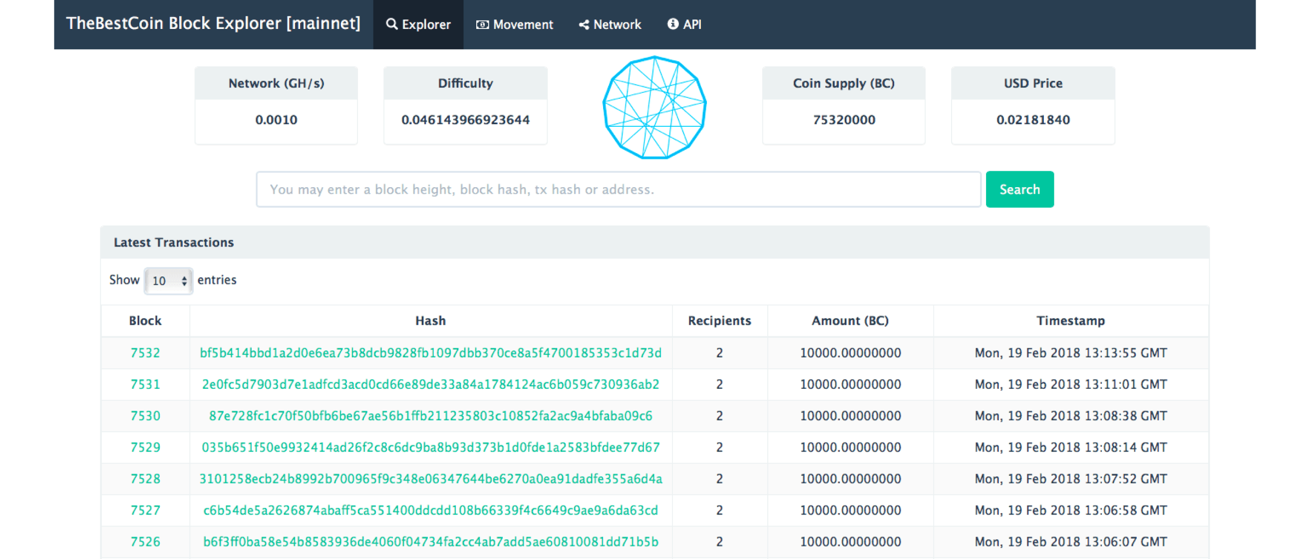 - We developed Blockexplorer